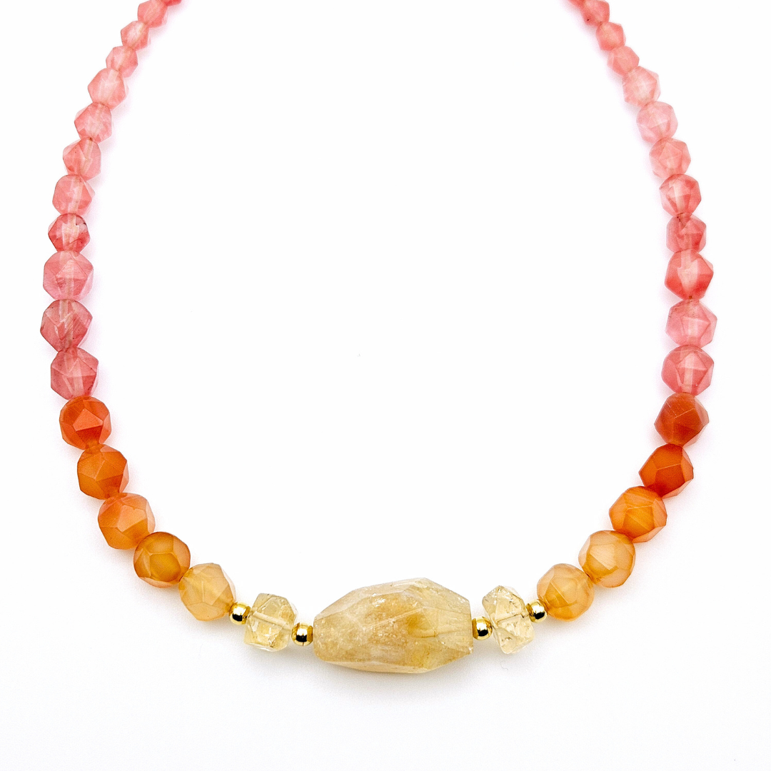 - Materials: Citrine, Watermelon Quartz, Carnelian